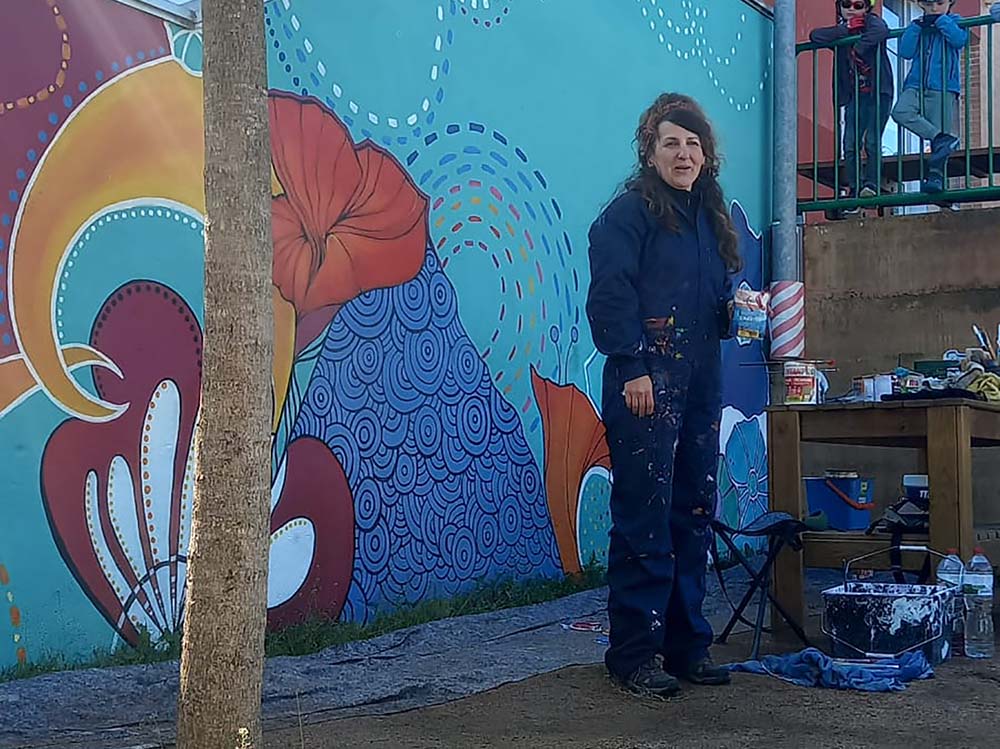 “Els meus murals són de colors vius i vibrants. M`agrada jugar amb les fusions de color, les formes oníriques, vegetals i orgàniques. Crear mons paral·lels, i portar l`art al carrer, on pugui transformar, reivindicar, i ser gaudit per tothom”.