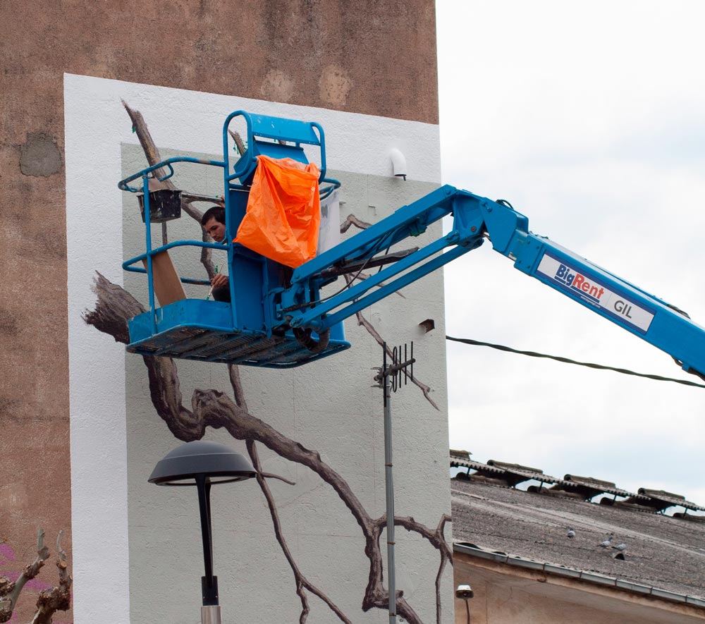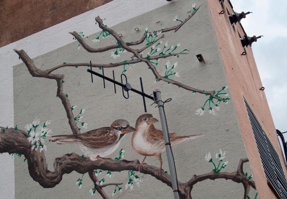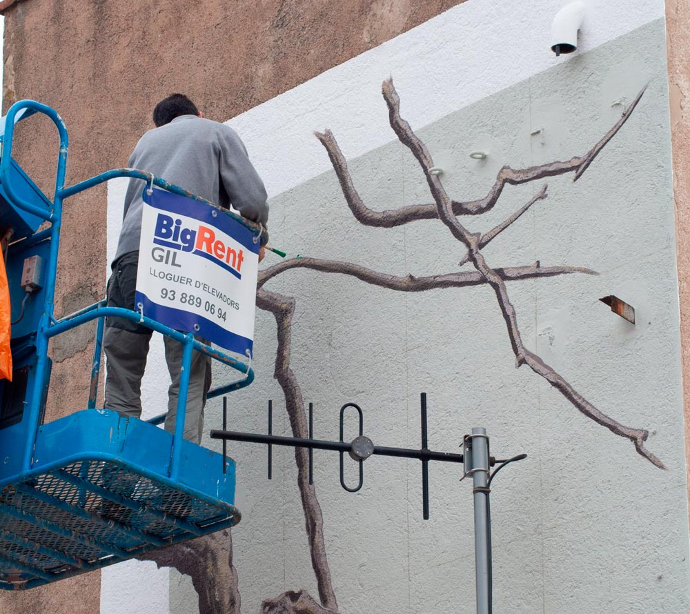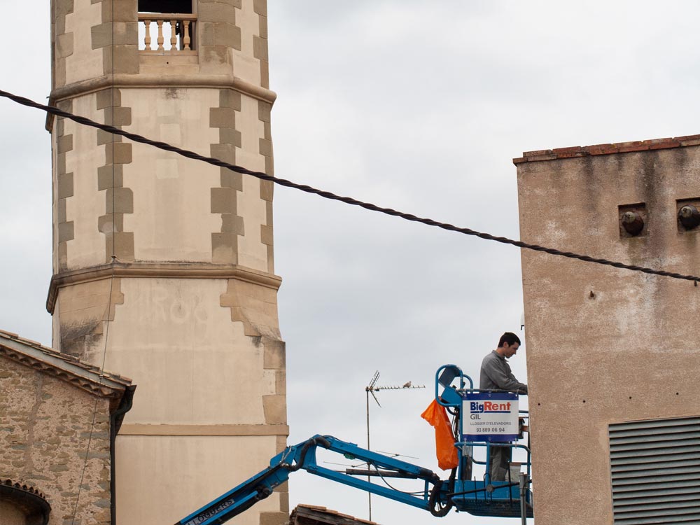 Que va pintar, amb tota la delicadesa i tendresa que desprenen els seus dibuixos, la torre elèctrica de darrere l’església.