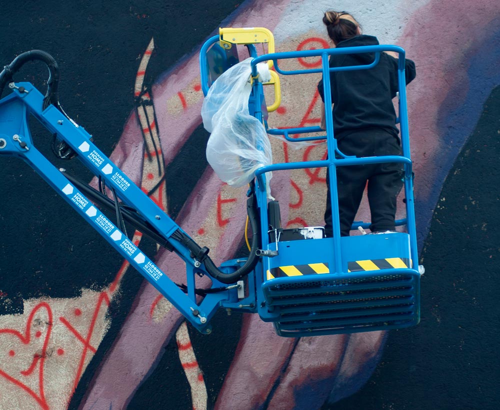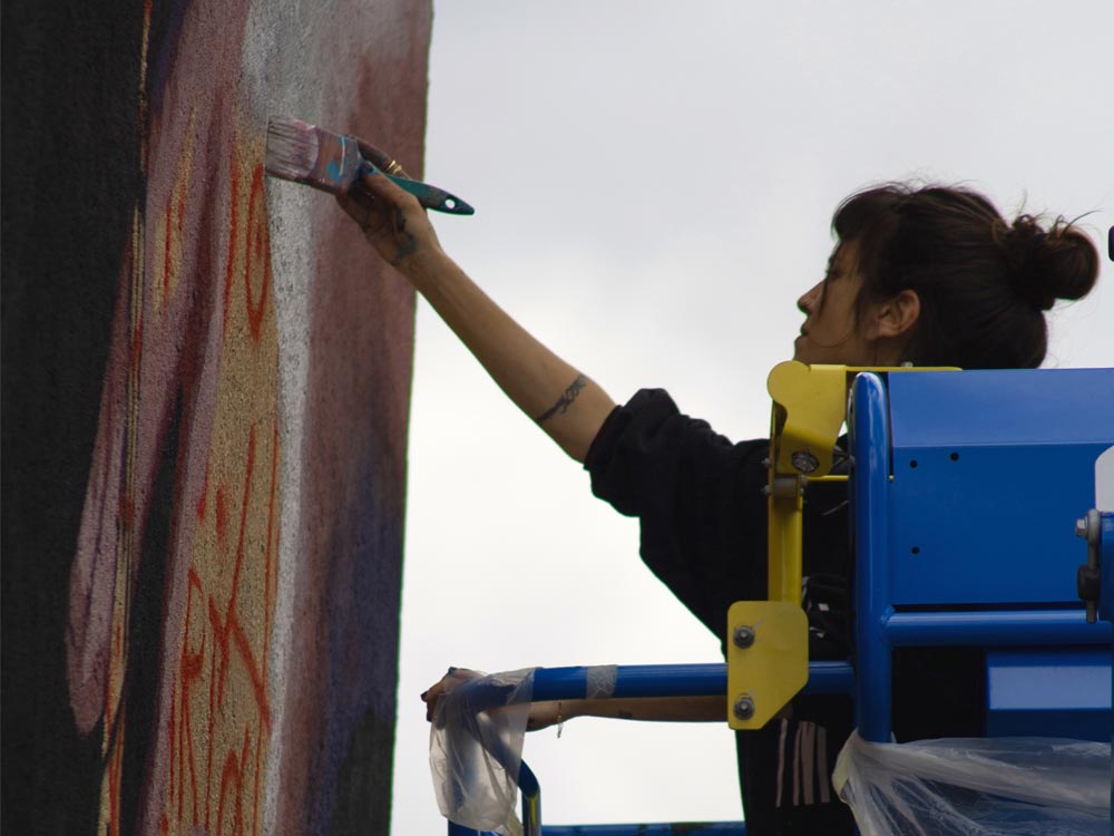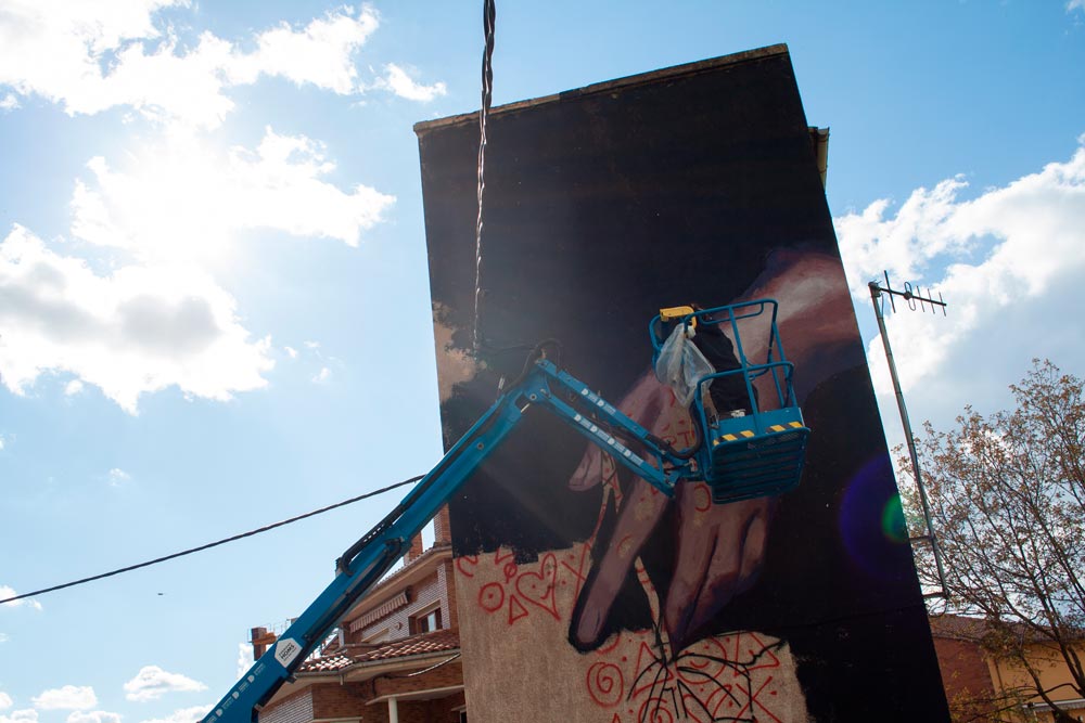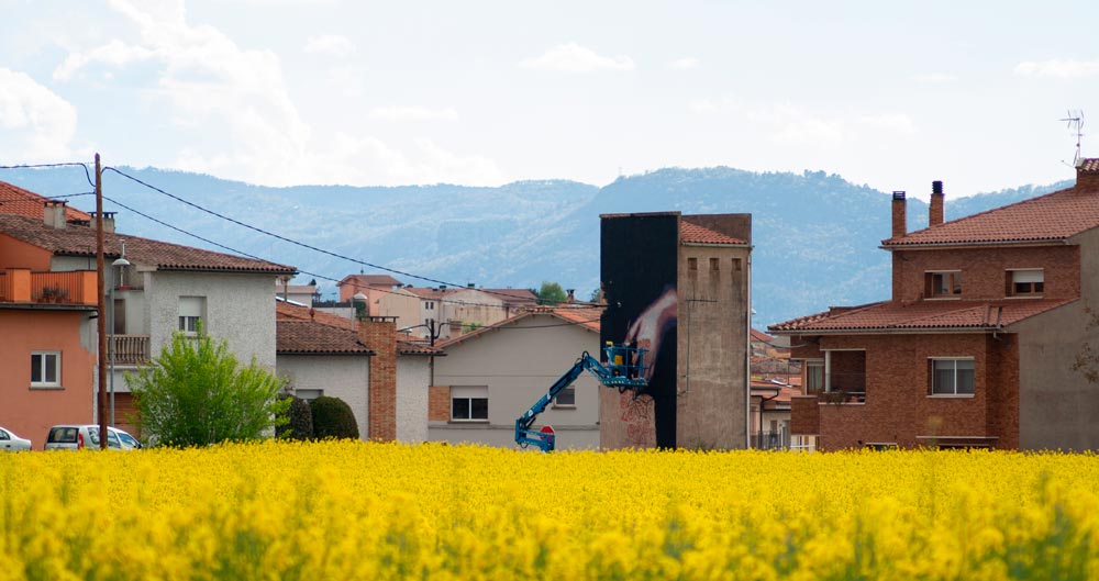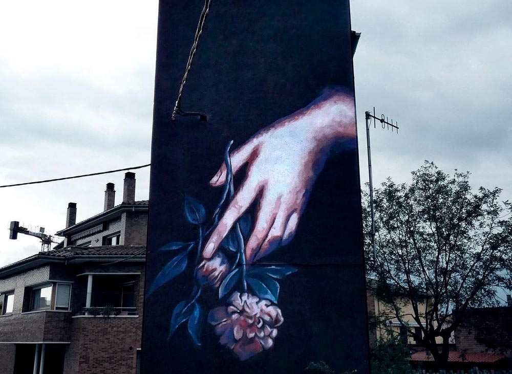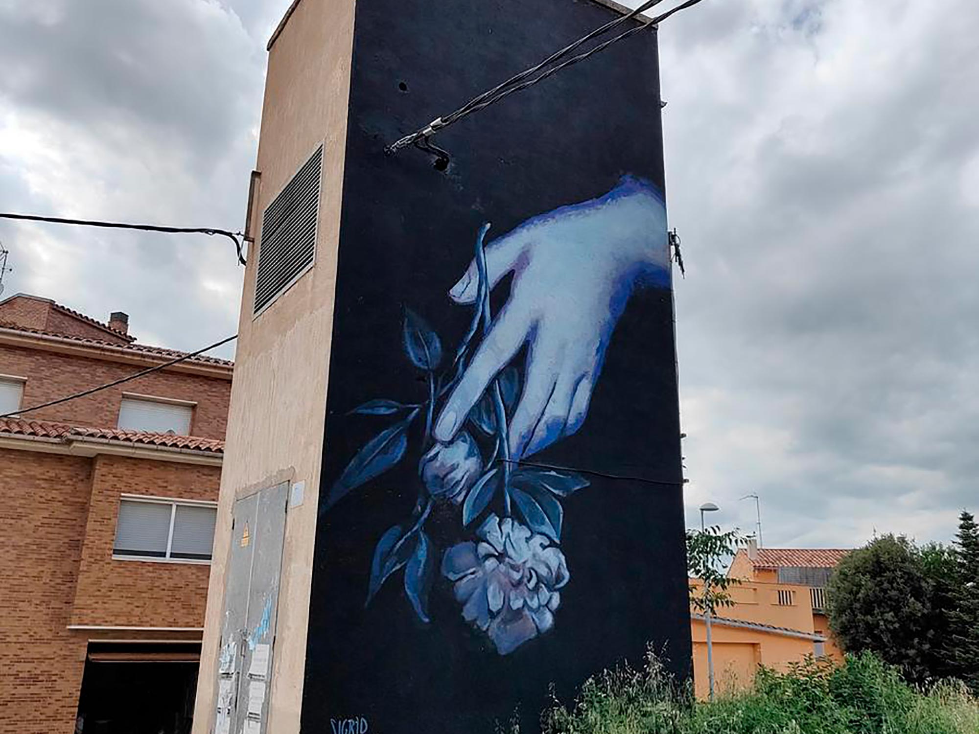 Mural pintat a la torre elèctrica del Barri Nou, basat en un detall de la pintura ‘Lady Dacre’ d’Anthony Van Dick.